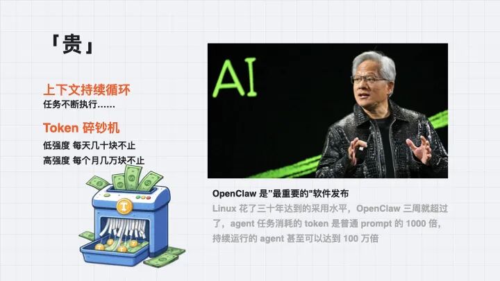 这跟过去的互联网算法不一样——互联网产品有网络效应,越做越顺,边际成本越低。但 token 不是这样,它需要上下文越长才能越懂你,没有那么简单。