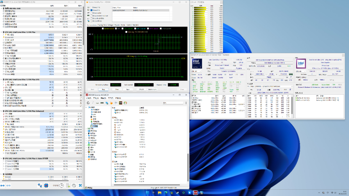 先看烤机表现,烤机一开始酷睿 Ultra 7 270K Plus 处理器的功耗就稳定在了 250W,而 CPU 温度最高达到了 83℃,随着时间的推移,CPU 核心温度最终略微回落并稳定在 76℃,CPU 封装温度也下降了 2℃,来到 81℃。这个温度表现相比同为 250W 功耗的酷睿 Ultra 9 285K 处理器要好不少,当然前提是我们将主板 BIOS 的性能策略模式始终保持在 intel Default。