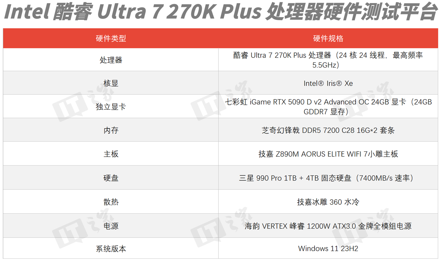 为了更好地展现酷睿 Ultra 7 270K Plus 处理器的性能,我们的测试平台会尽量贴合主流硬件搭配。另外需要注意的是,本次评测我们基于 Windows 11 23H2 系统版本进行,相比最新的 25H2 系统在性能上可能会存在一些差异,测试结果仅供大家参考。