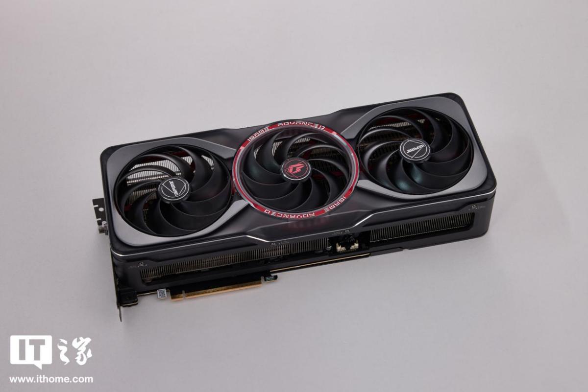 在理论性能测试部分,我们则搭配了七彩虹 iGame RTX 5090 D v2 Advanced OC 24GB 显卡。它采用黑透装甲和系列经典红圈设计,内部全新加入的红色金属材质“风机骨架结构”,支持五彩斑斓的渐变光环 RGB 灯效,双 101mm + 单 86mm 的大口径风扇与“风镰”扇叶的组合,最大程度提升散热效率。