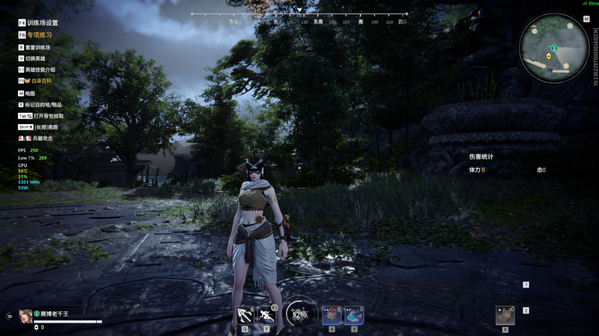 在《永劫无间》中,以 DX11 模式 + 2K 分辨率 + 高画质预设,进入训练场将人物站位在同一角度做实时帧数对比: