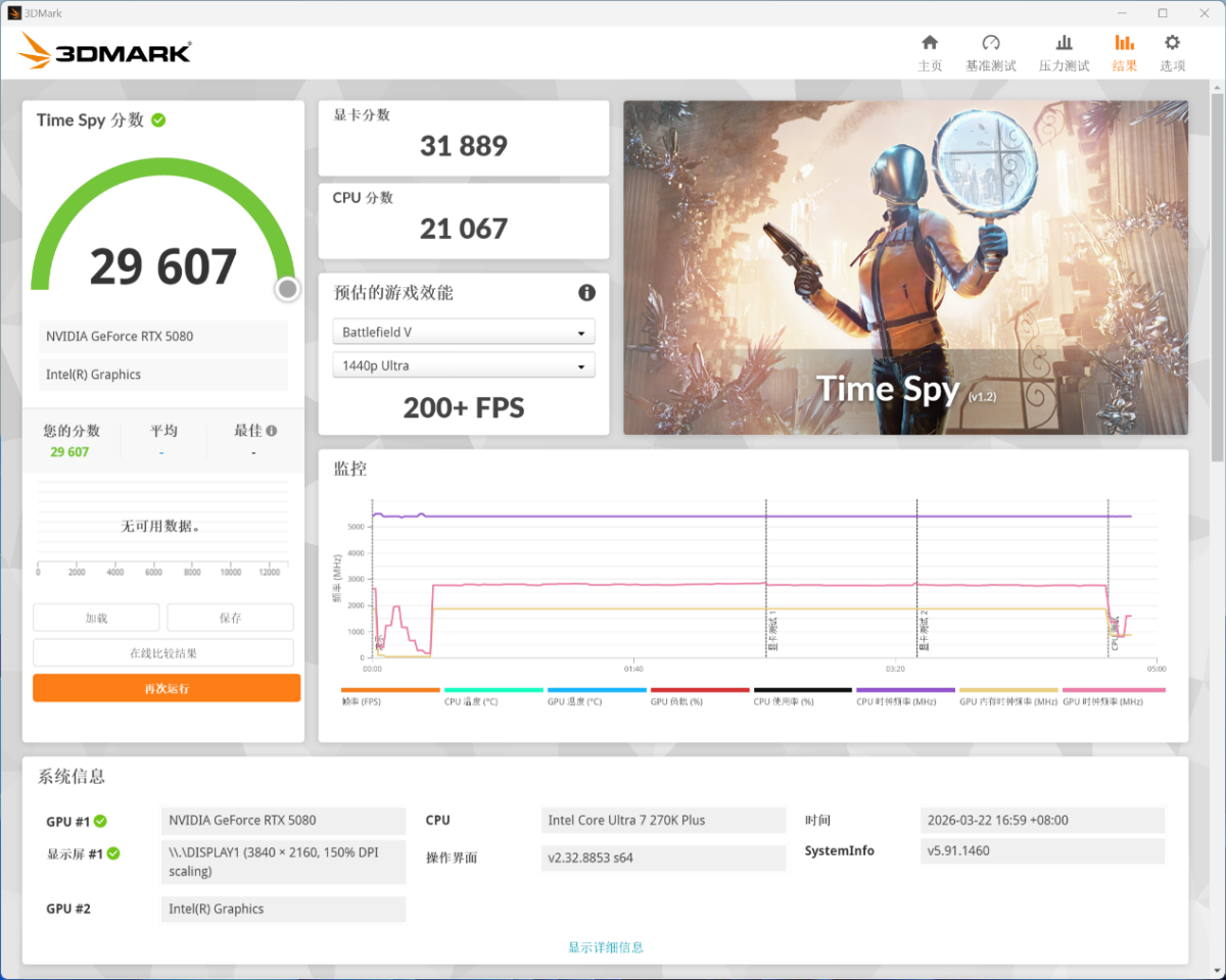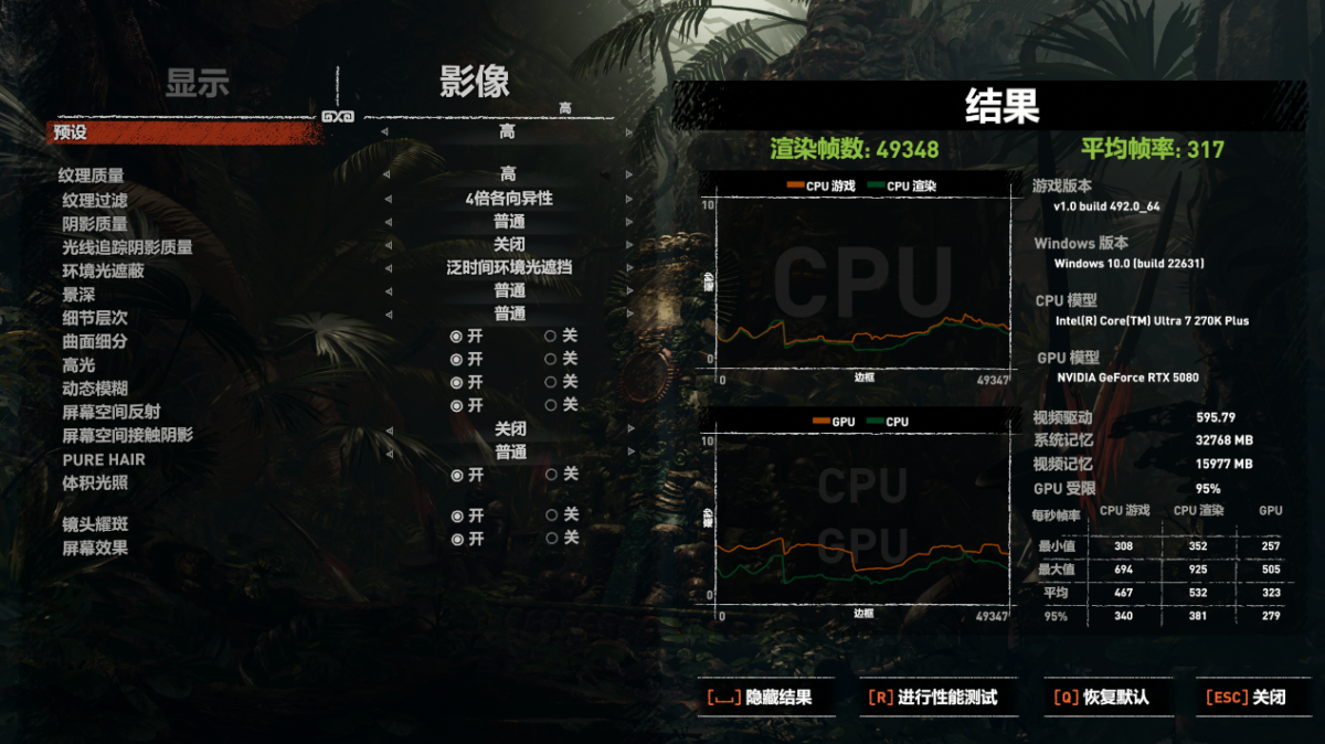 在《古墓丽影:暗影》中,以 DX12 模式 + 2K 分辨率 + 高画质预设,运行游戏自带基准测试: