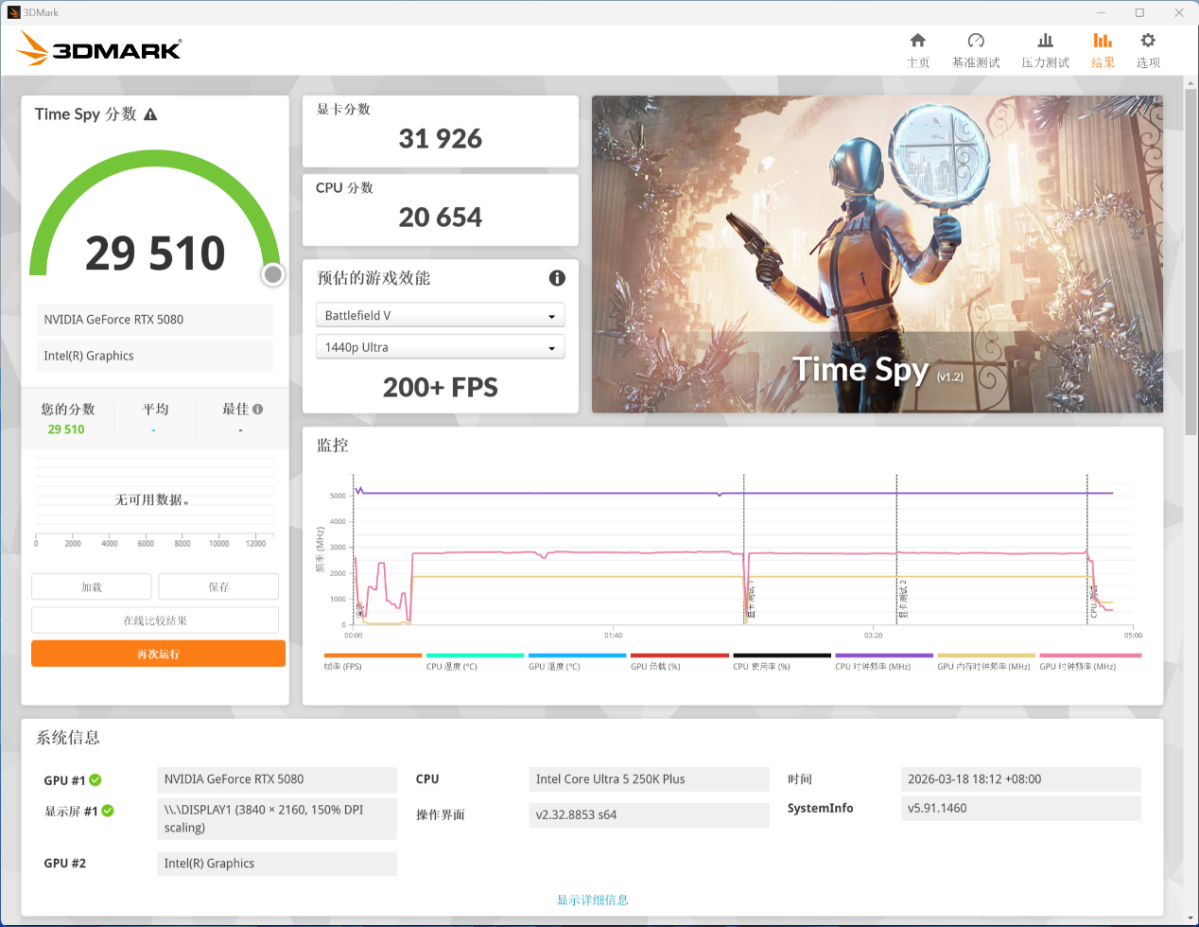 最后是 3D Mark Time Spy 的基准测试: