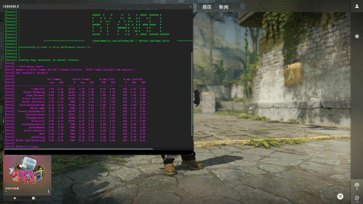 首先是常规游戏测试,在《CS2》中以 1080P 分辨率 + 高画质,运行创意工坊测试地图,酷睿 Ultra 5 250K Plus 的游戏平均帧数为 535 帧,1% Low 帧 208 帧。
