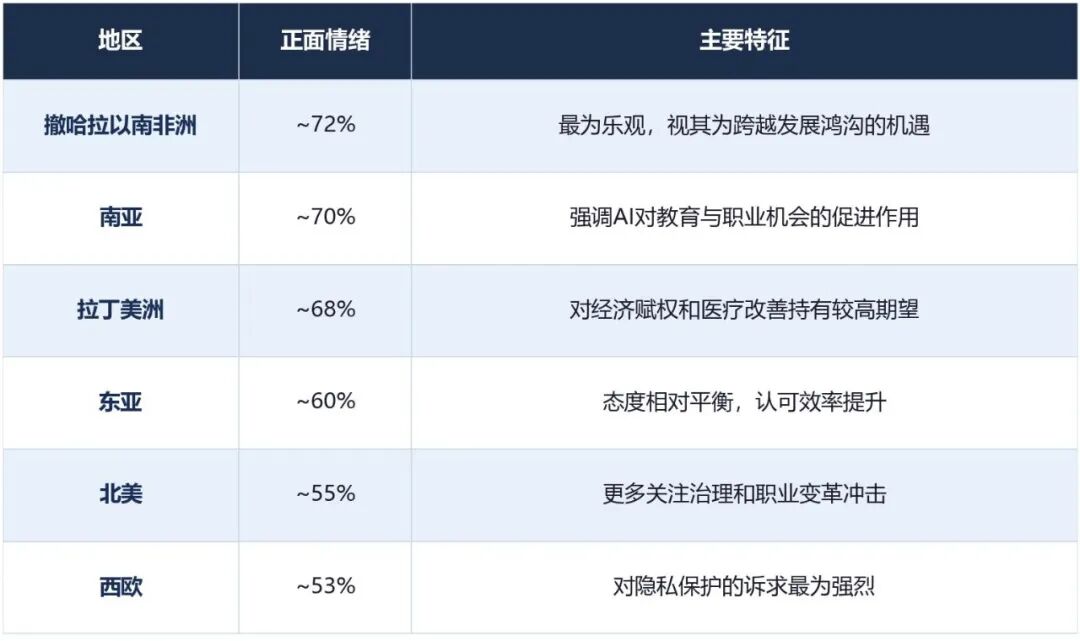 这份研究横跨159个国家,呈现了全球不同地区对AI态度的显著差异。
