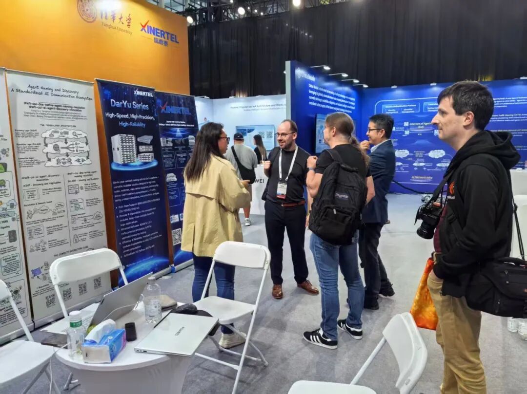 信而泰与清华大学的联合展示,恰与本届大会“AI与网络融合”的核心主题高度契合。在现场信而泰展示了从技术标准结构化解析、测试用例智能设计、自动化脚本生成,到多源测试结果智能归因分析以及审计级测试报告输出的AI赋能网络测试端到端闭环;荣获“2025年度创新产品奖”的X5-800G高端网络测试仪表也在大会期间精彩亮相,吸引众多海外专家驻足交流,成为展示中国在超高速以太网测试领域技术突破的生动注脚。