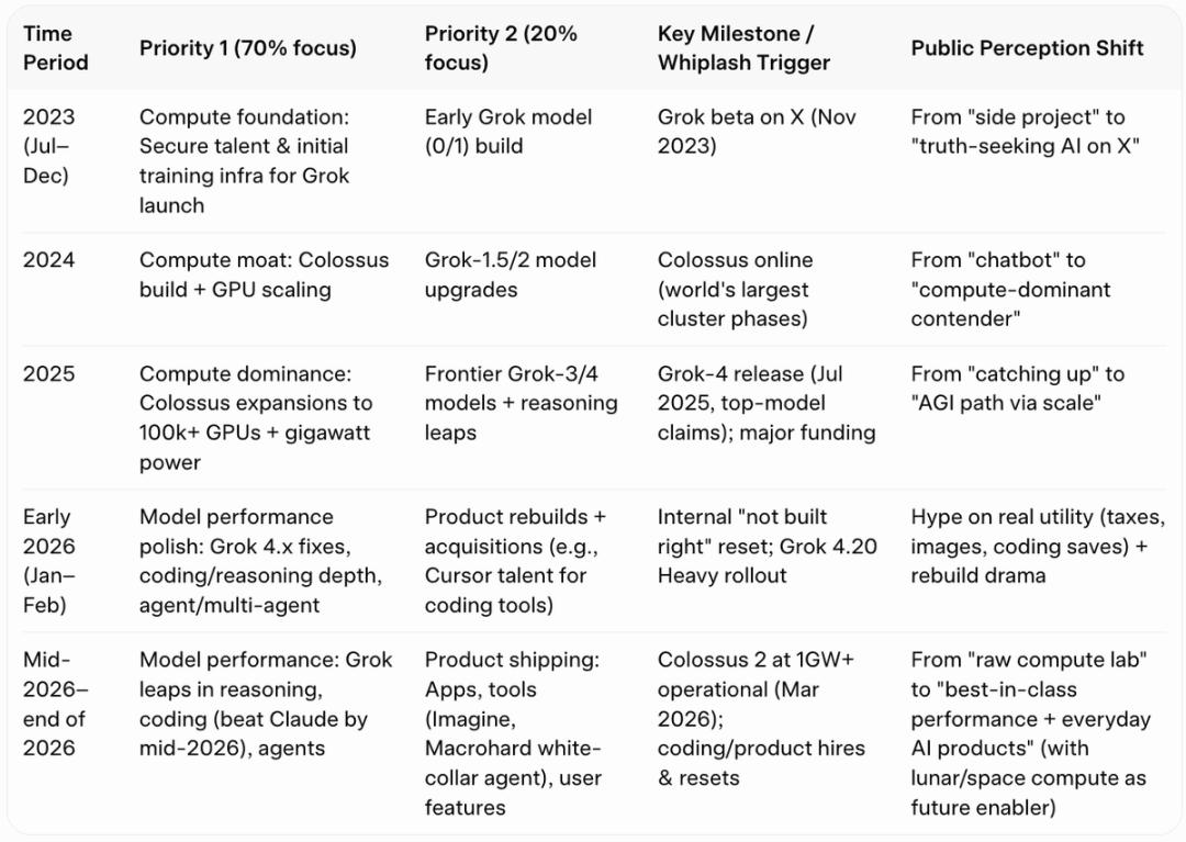 关键在于:随着Colossus 2的进展 + SpaceX对「轨道数据中心」的信心 + SpaceX在硬件执行上的能力,马斯克把「算力」从xAI的最高优先级里「放下来了」,因为目前一切进展顺利。