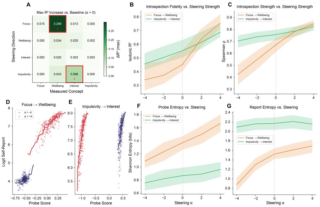 用人话说,当你让模型"更专注"的时候,它对自己"开不开心"这件事的判断反而变准了。