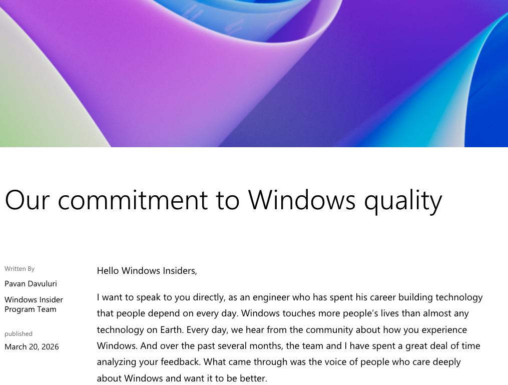 https://blogs.windows.com/windows-insider/2026/03/20/our-commitment-to-windows-quality/