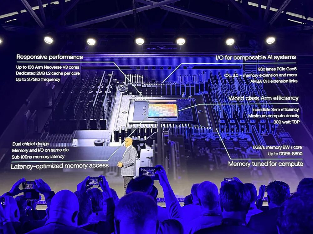 这是Arm发展35年来,首次推出对外销售的自研芯片,也是Arm全新数据中心芯片产品线的首款产品,标志着Arm正式进军数据中心芯片领域,将其高能效架构规模化引入AI基础设施。