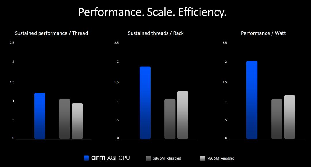 在发布会上,Arm高管强调了公司设计节能芯片的历史,并声称这款新AGI CPU将成为“市场上最高效的agenticCPU”。与英特尔和AMD最新x86芯片相比,Arm表示该芯片每瓦性能更高,能为客户节省巨额电费和CAPEX。