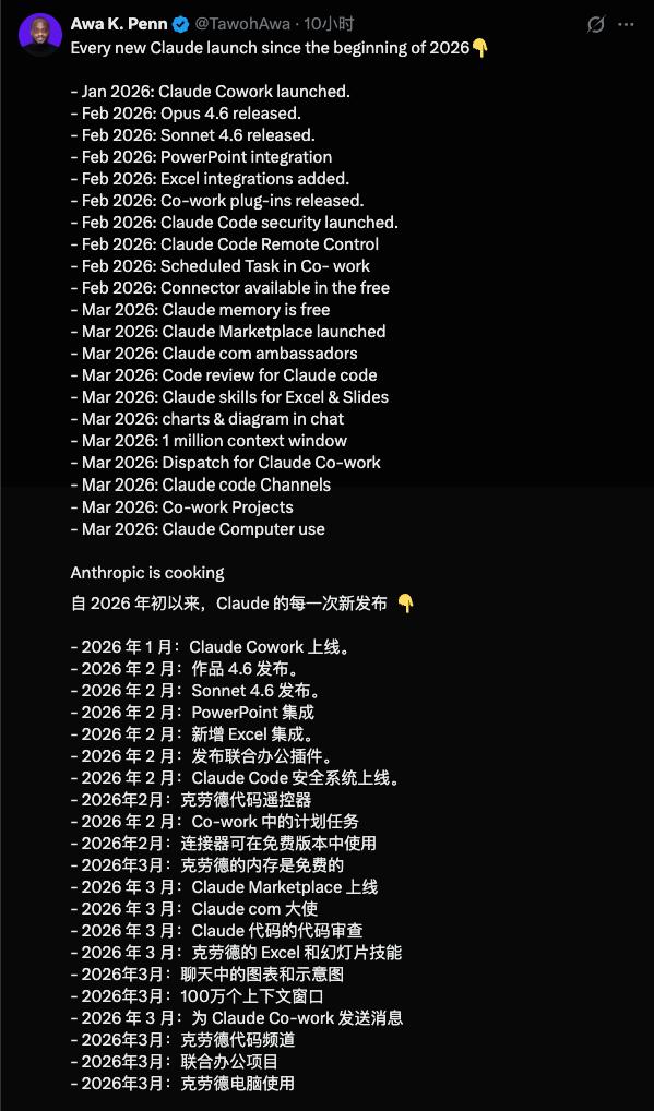 但 Anthropic 也不是吃素的,在过去 30 天内,Claude 完成了四项功能发布,每一项都精确对标 OpenClaw 的一个核心能力: