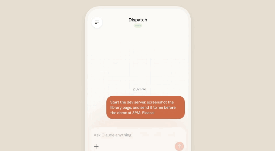 Dispatch 目前处于「研究预览」阶段,仅对 Max 订阅用户开放(月费 100 美元起)以及 macOS 系统。Windows 和 Linux 版本在紧锣密鼓筹备中。它的产品形态非常明确:一条从手机到桌面的持久线程。你在手机上启动任务,Claude 在桌面端执行,结果回传到手机。全程跨设备同步,对话不会中断。