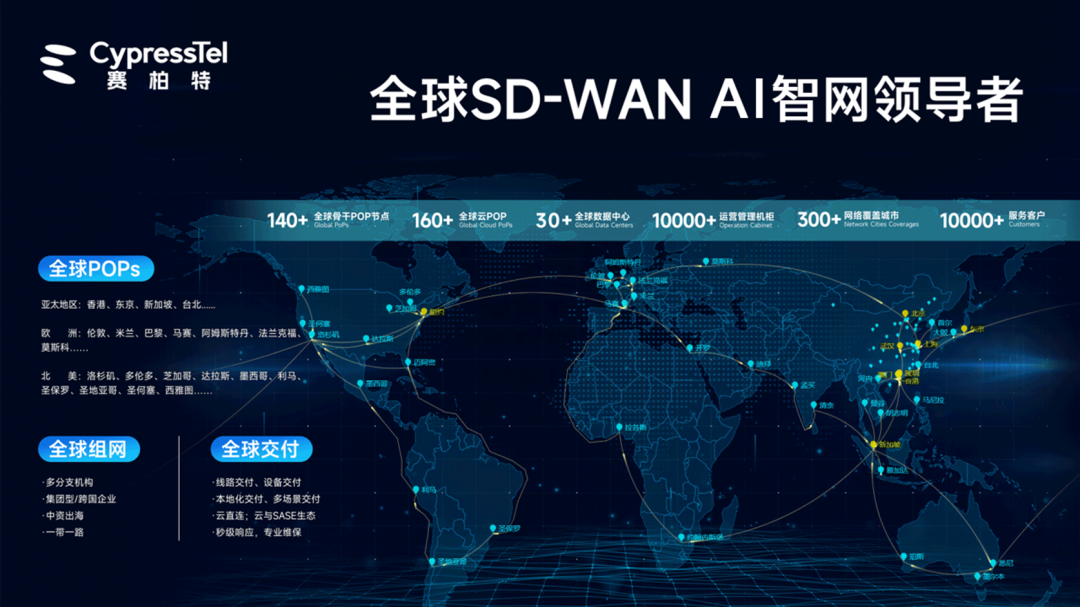 依托赛柏特自建的全球140+ POP节点,双方方案可实现与主流公有云的预置100G光纤直连,分钟级开通云专线。凭借覆盖全球的线路交付能力、设备交付能力、本地化技术支持团队,及累计为超过10000家中大型企业提供服务的经验,赛柏特已具备全球化多场景卓越交付能力,为AI运维提供坚实的网络底座。