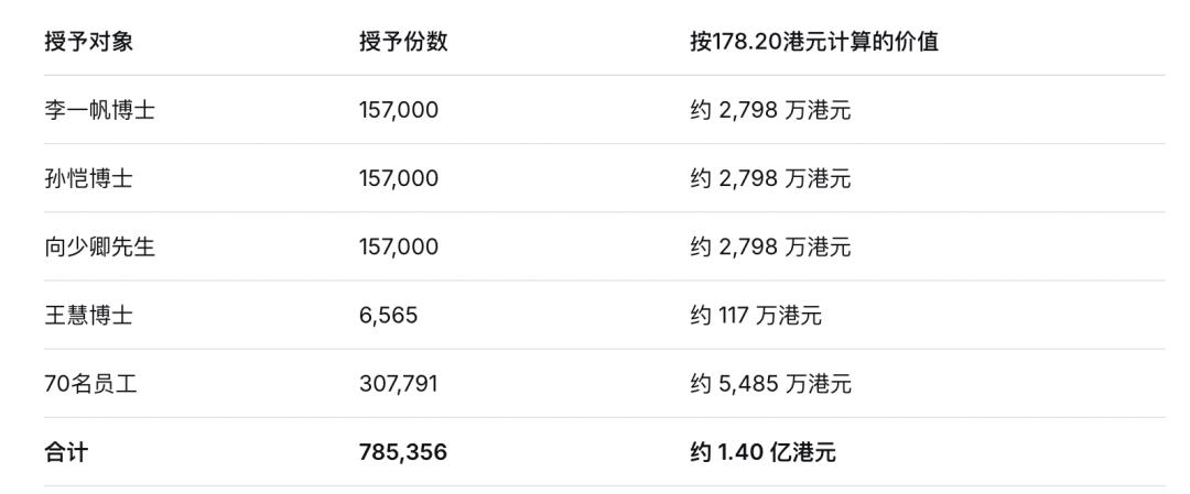 仅三位创始人,每人就分到约价值2800万港币的股票。