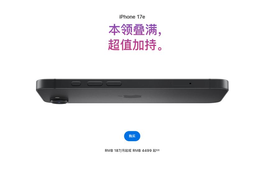 iPhone 17e官网起售价为4499元,被外界称作“目前最便宜的苹果手机”。(图/苹果中国大陆官网)