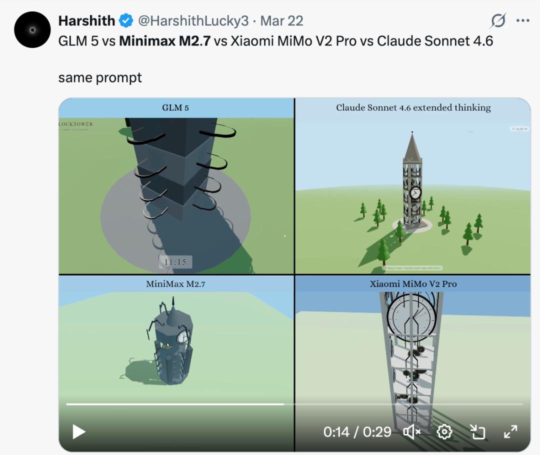 产品好才是硬道理,我们先从M2.5 来看,并非在技术上有绝对领先的地位,最有竞争力的,反而是较低成本。