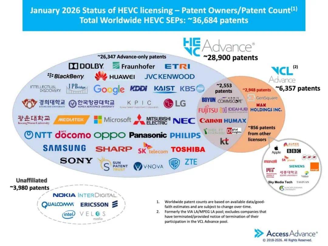 也是因为,华子加入了 HEVC Advance 专利池。