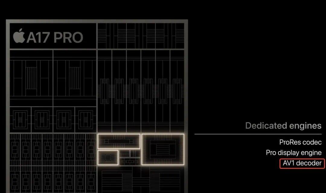 它是在 A17 Pro 上,才首次加入对 AV1 视频编码的支持。