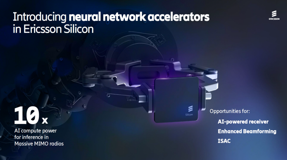 在这当中,爱立信在硬件层面的核心创新在于其自研Ericsson Silicon芯片中集成了可编程神经网络加速器(NNA)。这一设计将AI推理能力直接下沉到AAU/RRU的射频端,让射频单元自身就能完成实时AI处理,数据无需来回传输。