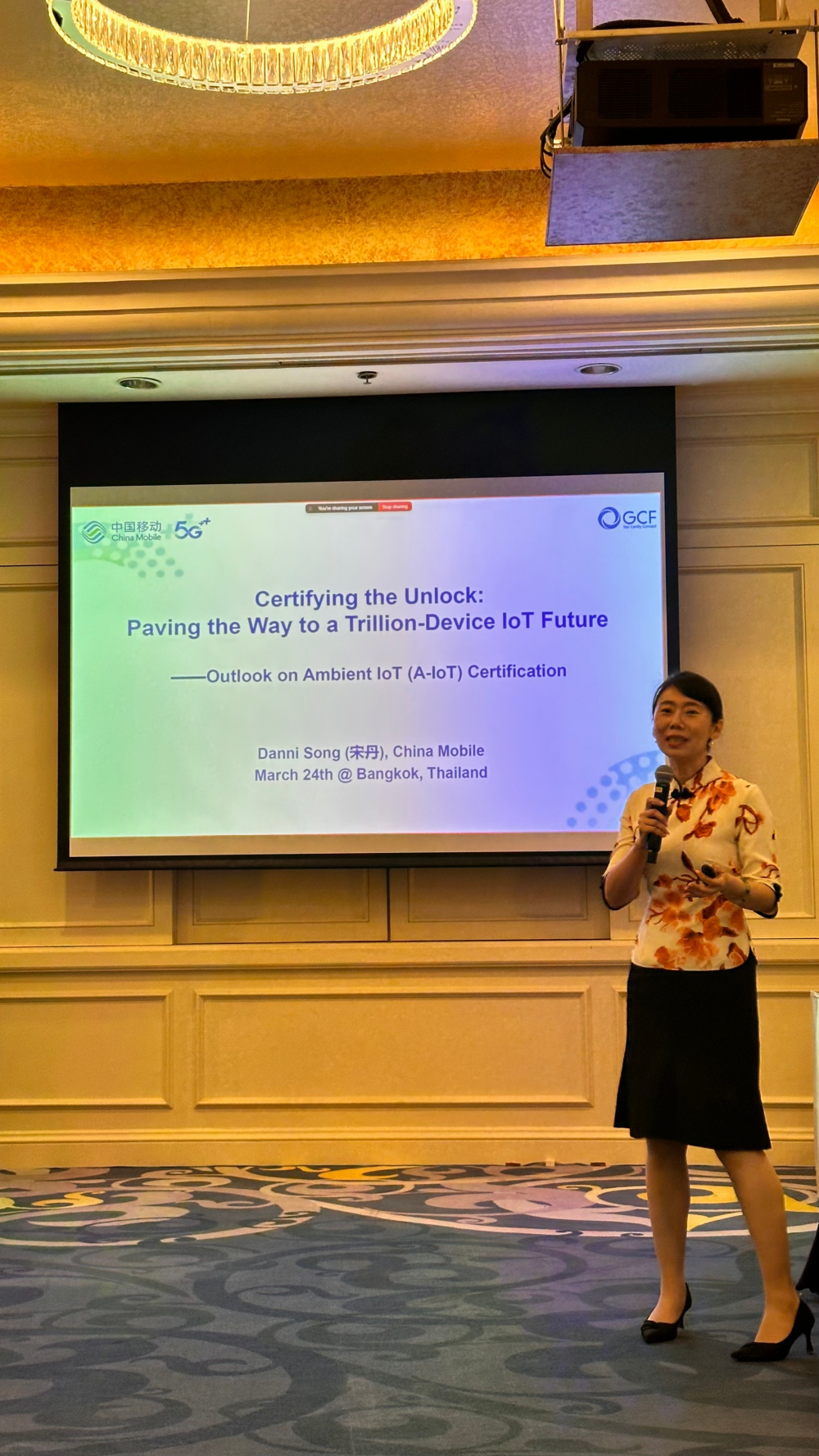 3月24日,由全球终端认证论坛(GCF)主办的“物联网创新技术测试研讨会(IoT Disruptive Technologies Testing Workshop)”在泰国曼谷召开。全球移动通信产业链核心主体齐聚一堂,共商终端合规认证体系与前沿技术标准化发展前景。中国移动研究院无线与终端技术研究所主任研究员宋丹博士受邀出席,并作了题为“以认证为钥,解锁万亿物联网未来(Certifying the Unlock: Paving the Way to a Trillion-Device IoT Future)”的主旨演讲,全面分享了无源物联网领域的技术研究进展、国际标准化推进成果、认证体系建设实践及无源物联测试认证面临的技术挑战。