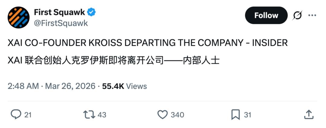 参考链接:[1]https://www.businessinsider.com/manuel-kroiss-xai-cofounder-departure-elon-musk-2026-3