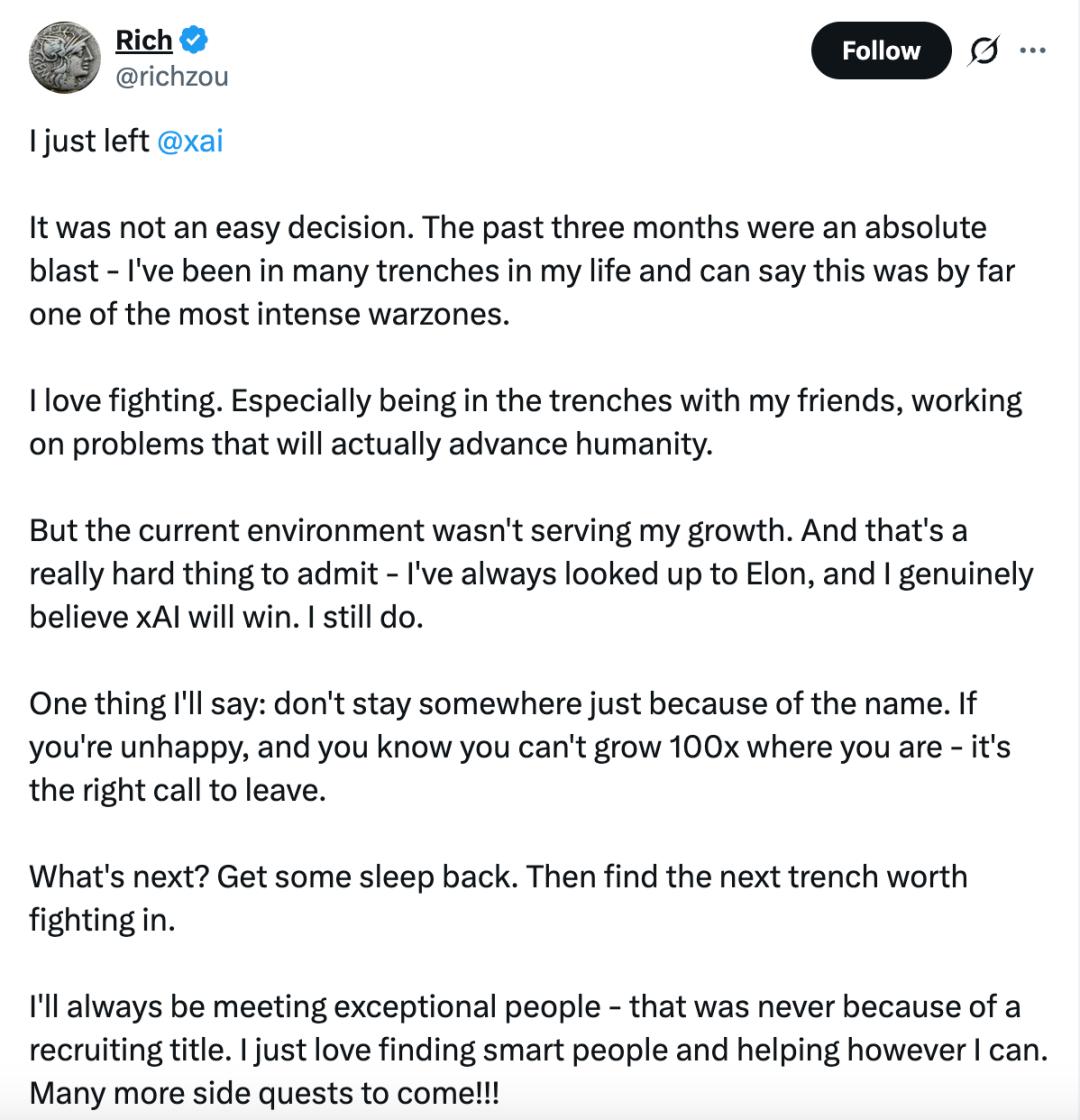 凄凄惨惨戚戚,xAI联创,现在只剩一个了。