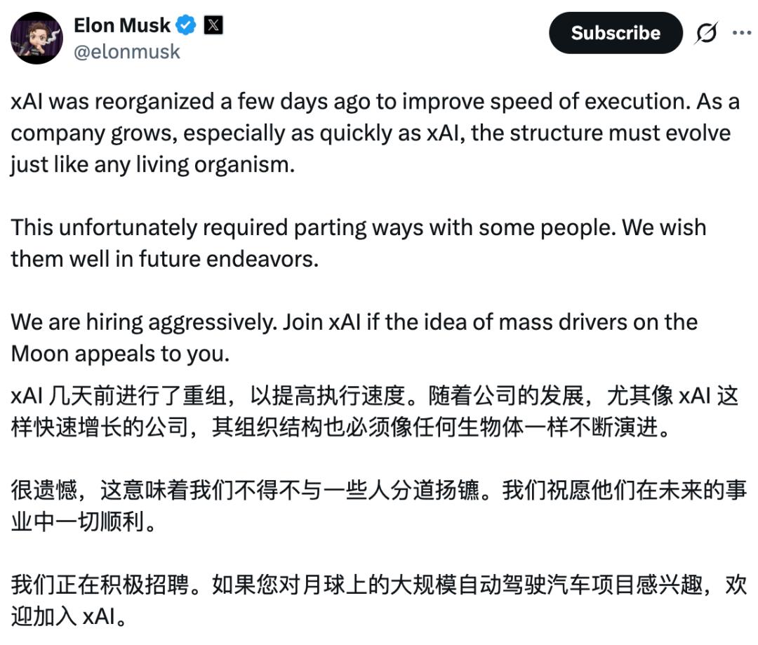 老人走新人笑,老马会组建出怎样一支全新的xAI团队?