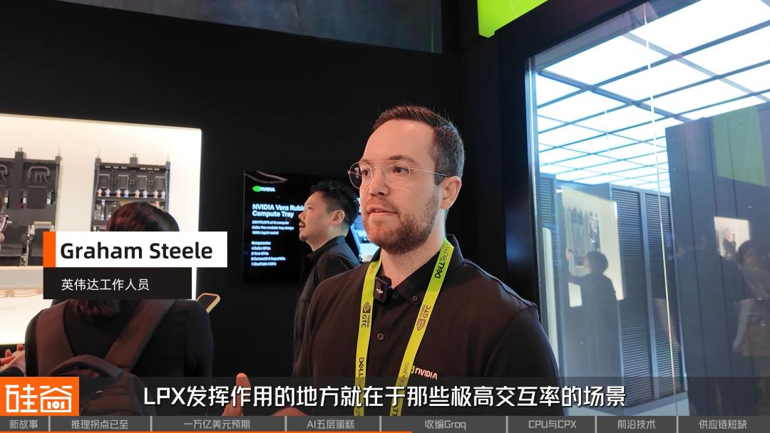 这些CPU是专为AI工厂打造的。当你们的GPU进行推理或强化学习训练时,它们会生成大量的软件代码,这些代码需要被评估正确与否,然后反馈需要传回给GPU。CPU承担了评估这些代码的任务,所以在那个阶段,你需要一个非常快的CPU来向GPU提供评估反馈,这样GPU就不需要加权了。这就是为什么我们专门打造这款产品,它具备极高的单核性能以及极大的内存带宽,这样数据就可以无缝移动,并且所有环节都能达到非常出色的机架级性能效率。所以,将所有这些结合在一起,就成就了一款非常适合智能体任务和AI工厂的理想CPU。