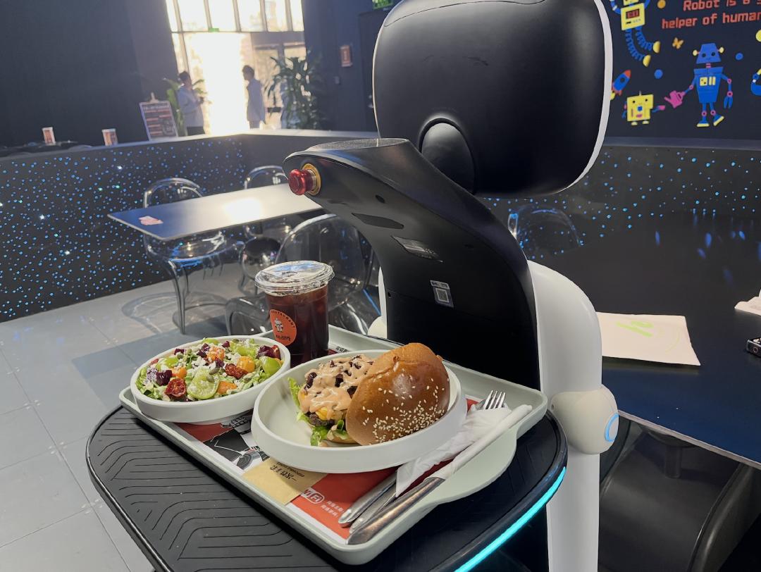 不过,人工智能的背后,依然是“能工智人”。因为机器人的出品时间和稳定性不足以满足接待要求,目前餐厅内主要还是由人类掌勺,菜品就是普通西式简餐的味道,人均消费70-80元;接待引导也是靠人类服务员;哪怕是上菜,顾客一旦多起来忙起来,还是人类在跑着在上菜。