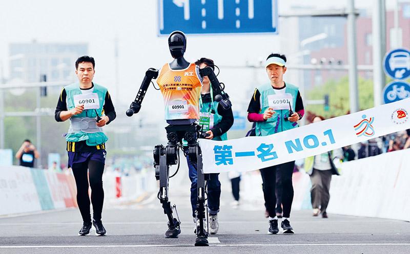 彼时,人类和机器人会同时起跑。据说,沿途还会有机器人啦啦队跳舞加油、机器人服务官递水指路。打工人跑着跑着一扭头,会发现旁边赛道里的“钢铁侠”正在吭哧吭哧追你,场面相当赛博朋克。