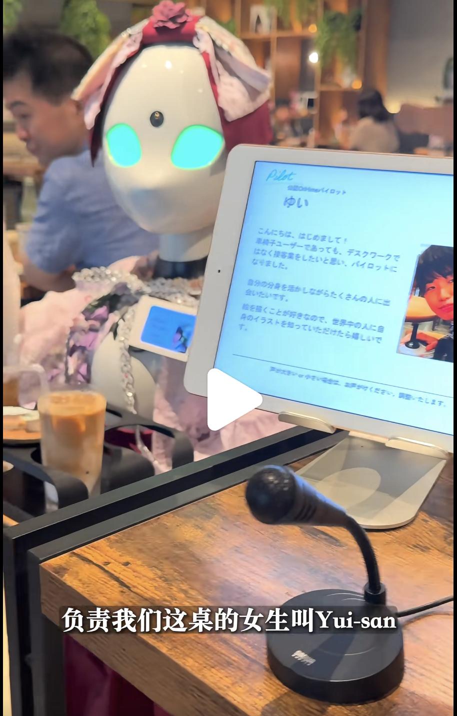 说到“能工智人”,另外一家位于日本东京秋叶原的“分身机器人咖啡馆”提供了另一种思路:在那里,因生病或残障无法出门的人成为“飞行员”,通过摄像头和麦克风远程操作机器人,为客人送餐,和客人聊天,谈彼此的生活和梦想,因此被称为“最有人味儿的餐厅”。