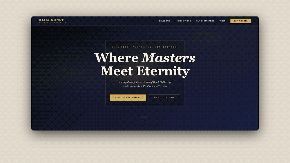 但在评估器不断施压下,第 10 次迭代,AI 突然抛弃了所有常规模板。它交出了一个特立独行的 3D 空间:画作悬挂在透视棋盘格的房间里,用户需要像走迷宫一样穿梭。