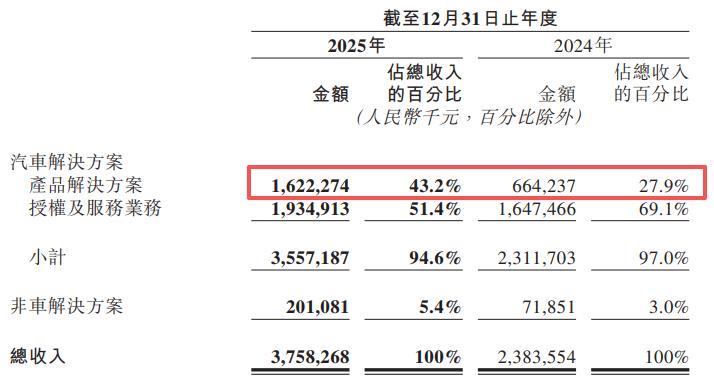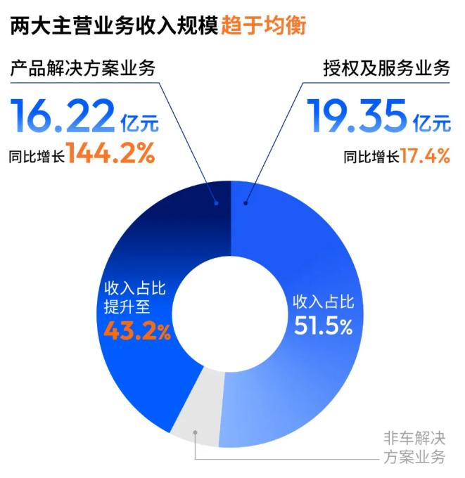 所以,在地平线一顿猛推之后,去年 “产品解决方案 ” 猛增 144.2%,财务上已经和 “ 授权及服务 ” 的比重差不多了。
