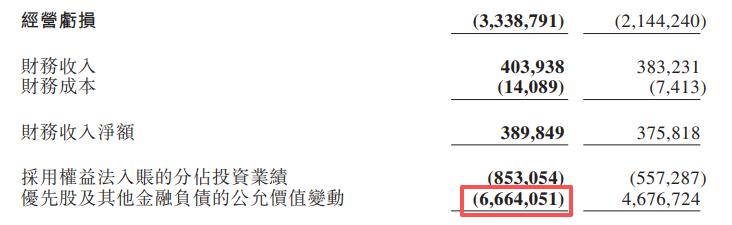 这 104.7 亿里面,其实有 66.64 亿,是因为 “优先股及金融负债公允价值变动 ”的会计准则。意思是,之前融资的时候,有一部分人拿了 “ 优先股 ” 。