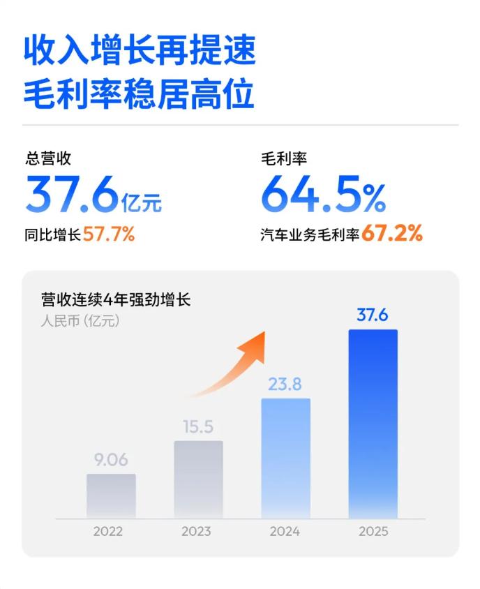 前几天,它发布了 2025 年财报,数字是真的很爆啊,营收增长 57.7% ,毛利率 64.5% ,车企们见了估计哈喇子都要流一地。