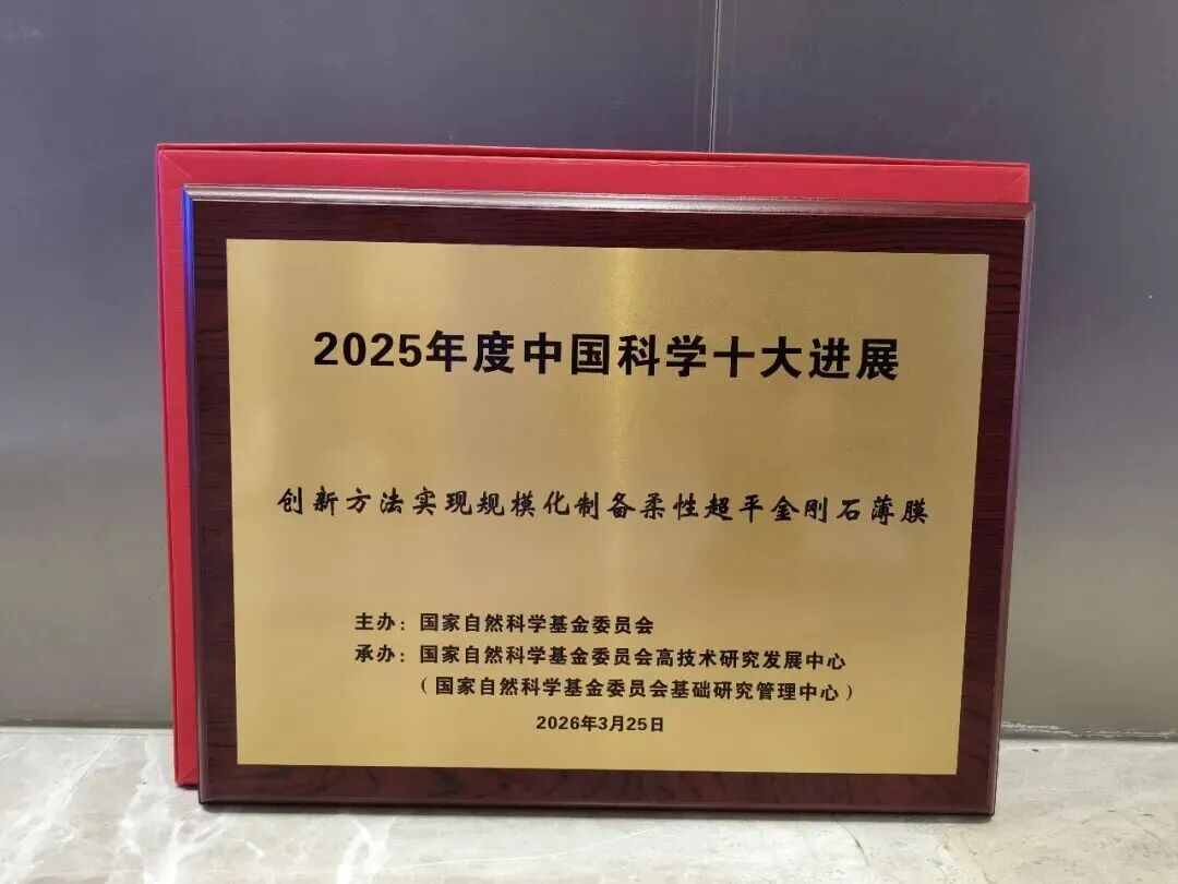 2026年3月25日,国家自然科学基金委员会在2026中关村论坛年会开幕式上发布了2025年度“中国科学十大进展”。我校深港微电子学院李携曦副教授联合研究团队的研究成果——“创新方法实现规模化制备柔性超平金刚石薄膜”入选。