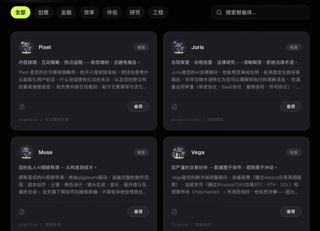 StoryClaw默认预置四个角色,导演、交易员、生活助理与财务。角色库内另有300多个角色可供选择,最多可扩展至10个独立角色同时运行。这些角色的技能均经过安全审查。