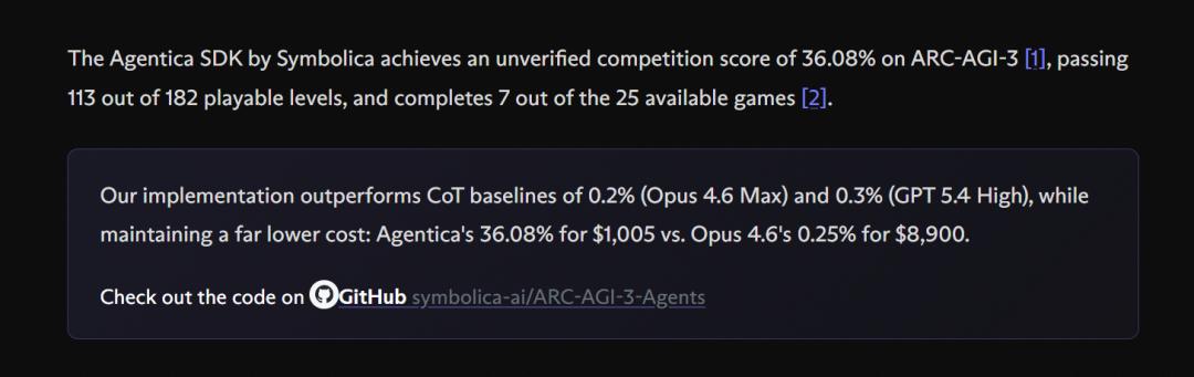 Symbolica的Agentica框架,为什么在ARC-AGI-3发布首日就能交出36.08%的惊人成绩单?
