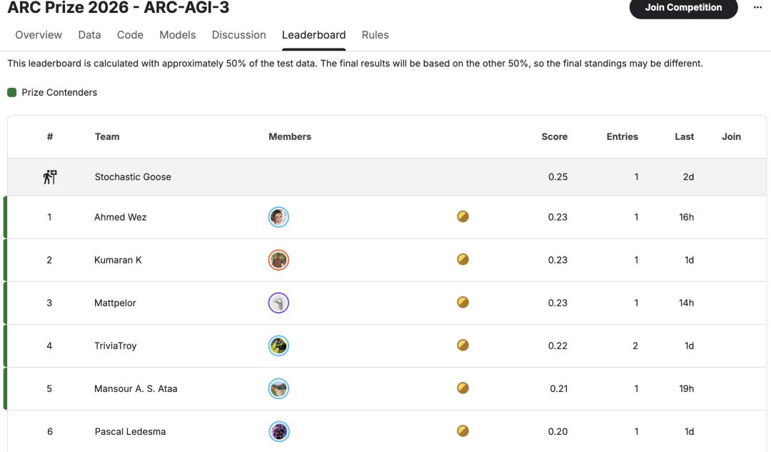 目前,最好成绩为0.25,也就是相当于人类基线的25%。