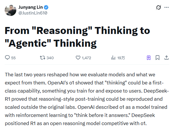 5.林俊旸阿里离职后发长文:复盘千问路线受阻,断言AI演进全面转向智能体