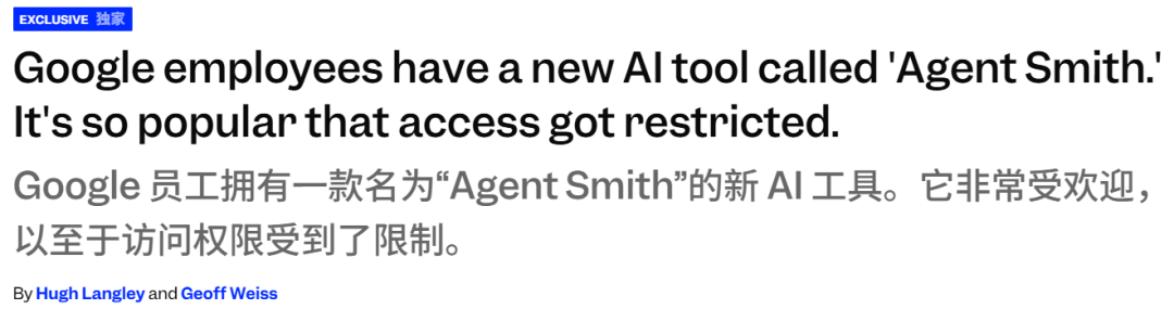 据知情人士透露,Agent Smith在谷歌内部一上线,员工就蜂拥而至,直接把服务器挤爆了!