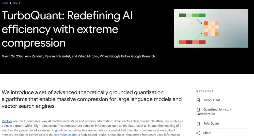 ▲TurboQuant博客
