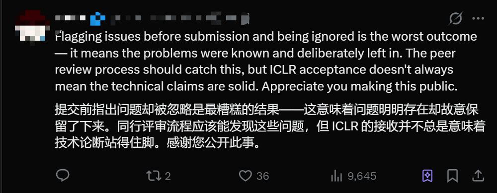 X平台上,有网友评价道,在论文提交前问题就被指出,但却被忽略,这是最糟糕的结果。这意味着TurboQuant团队明明意识到问题存在却故意保留了下来。虽然同行评审流程应该能发现这些问题,但ICLR的接收并不总是意味着技术论断站得住脚。