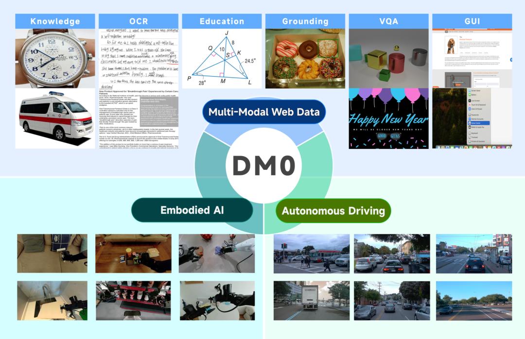 △原力灵机DM0模型包含互联网、自动驾驶、具身三类数据的多源混合训练,图片:采访人提供”