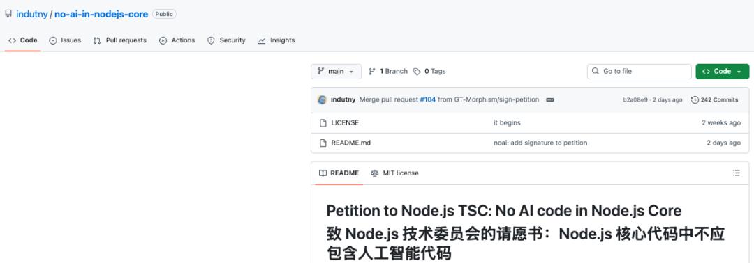 这场争议的升级源于 Node.js TLS 模块主要作者、前 TSC 成员 Fedor Indutny 在 GitHub 上发起的公开请愿:《致 Node.js TSC 的请愿:禁止在核心代码中使用 AI》。