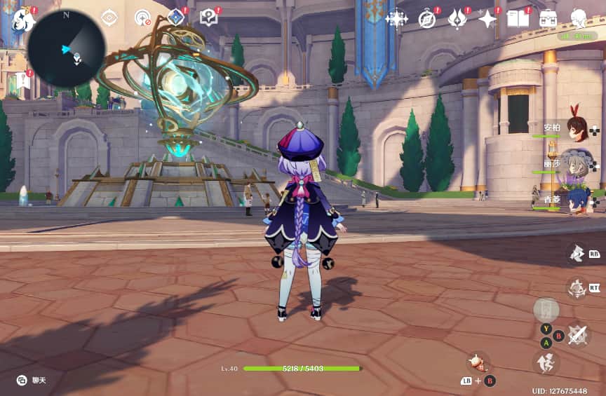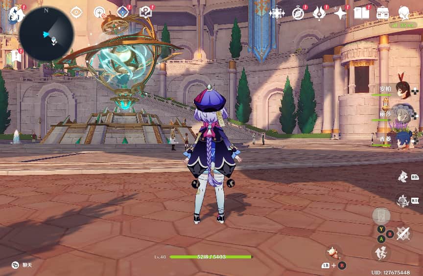 而接下来这两张图则展示了游戏超分开启前后,游戏画质的变化,可以看到,开启游戏超分后,《原神》的游戏画质确实更加清晰锐利了,画面清晰度有肉眼可见的提升,细节也更加丰富了,比如角色人物身上的纹理,明显更加清晰。