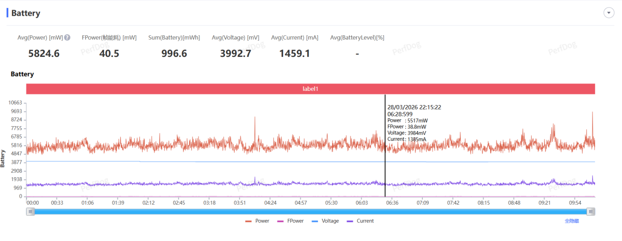 测得游戏运行的平均功耗为 5.1 W,和上面温度测试的结果也是对应的。