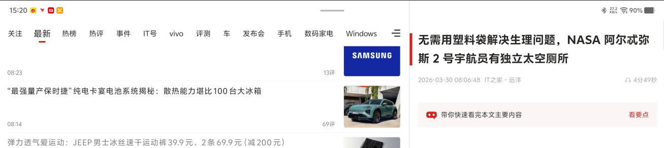 首先要说的就是 vivo Pad6 Pro 的原子工作台,类似于 iPad OS 的台前调度,在 vivo Pad6 Pro 上,从屏幕右下角往中间划动悬停,就可以呼出原子工作台。开启后,支持至多 5 个应用窗口同屏显示,且互不遮挡。你可以关注多个应用进程,并通过主窗口和原子窗形态在其间快捷切换。