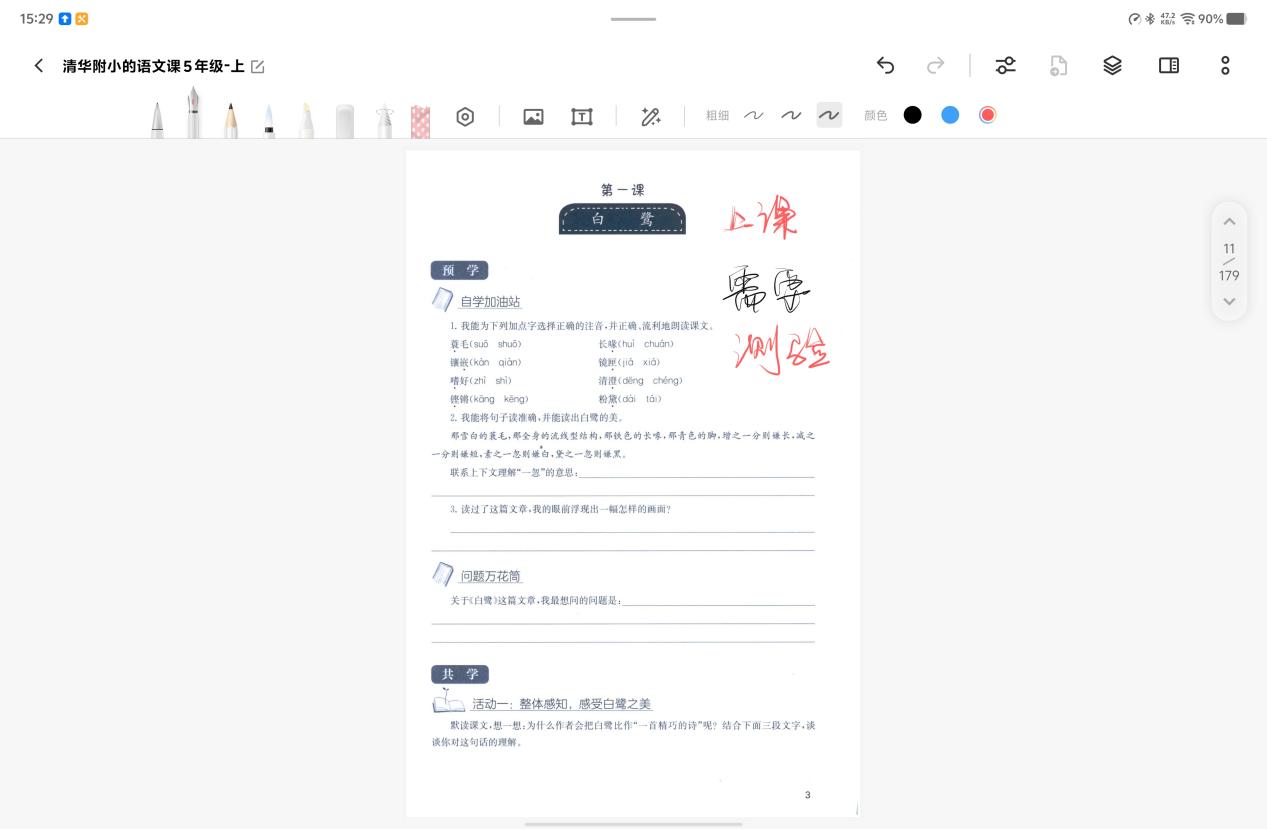 在原子笔记中,使用 vivo Pencil3 手写笔进行书写是比较常用的功能,日常开会做记录、采访、记账等等都非常使用。同时你还可以在原子笔记中导入 PDF 文件,然后直接在 PDF 文件上用手写笔进行标注、支持圈划、写字、图片插入,正文 + 标注 + 贴图等各种功能,比如老师对课件进行批注,学生对文档资料进行圈选标注等等,都非常有用。批注完后还可以直接输出,成为高质量的笔记。